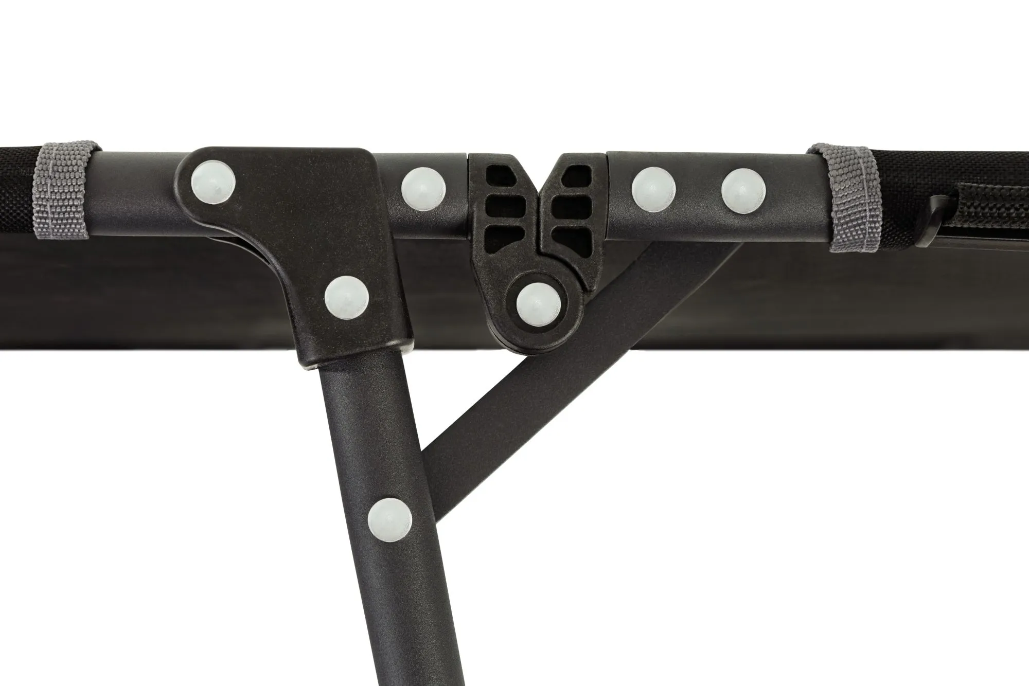 Туристическая раскладушка TAMPA XL Black многоцелевого назначения может быть использована как раскладушка для кемпинга, раскладушка для рыбалки, раскладушка на дачу. Складная кровать для кемпинга необыкновенно прочная за счет усиления крепежных элементов, а также комфортна в использовании благодаря большим размерам. Длина раскладушки 195 см. Раскладывается за 10 секунд.