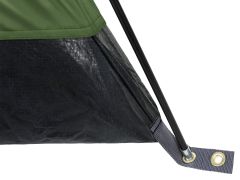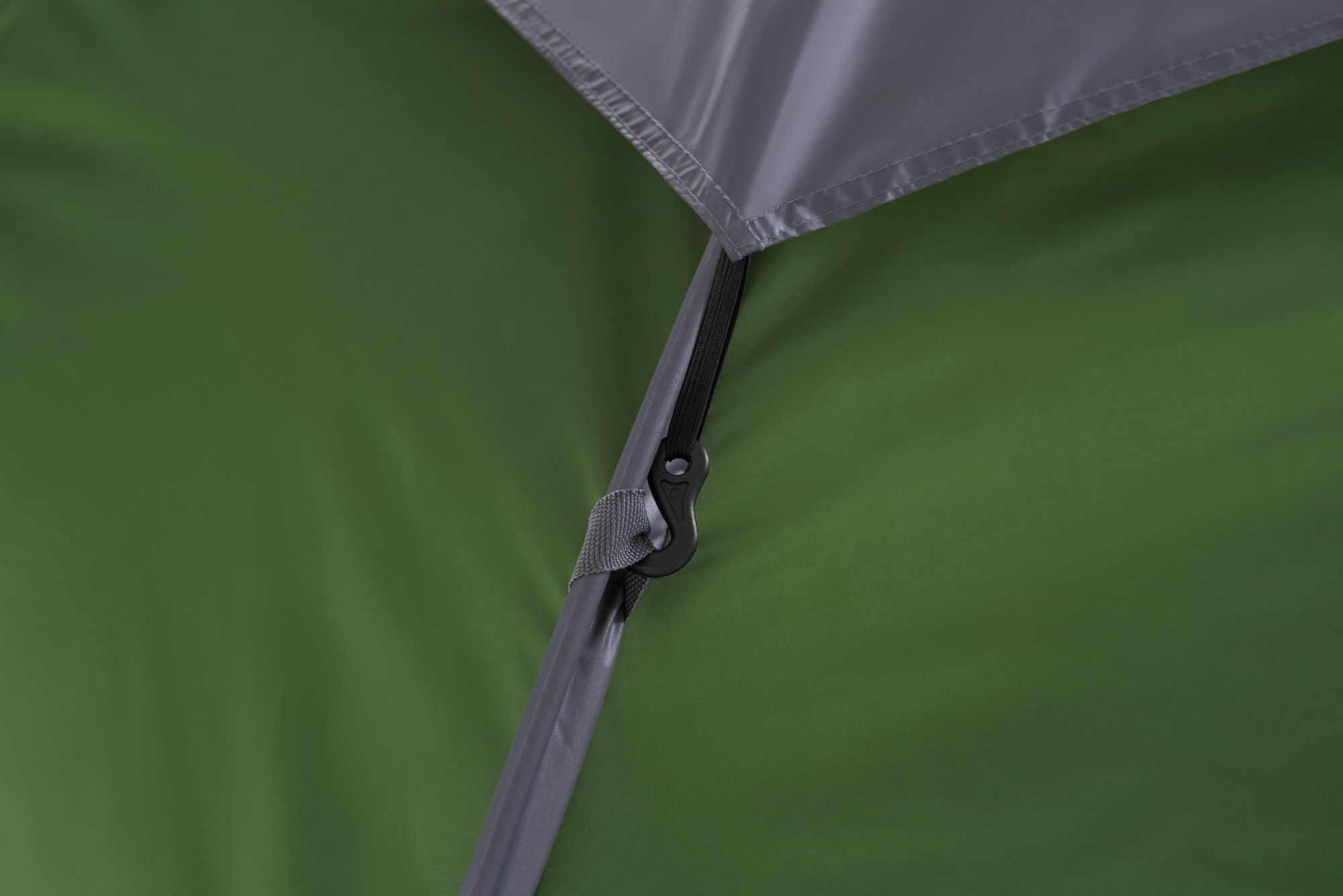 4 вентиляционных окна в крыше палатки обеспечивают отличную вентиляцию, предотвращая скапливание конденсата и отведение его наружу. Наличие тамбура позволяет разместить обувь и снаряжение. Палатка имеет каркас из прочного стекловолокна. Дно палатки выполнено из прочного армированного полотна. Удобная D-образная дверь на входе в спальное отделение. Москитная сетка в полный размер двери в спальное отделение обеспечивает отличную вентиляцию и защиту от проникновения насекомых. Для организации пространства внутри палатки предусмотрены карманы для мелочей, крючок для подвешивания фонаря. Палатка для путешествий имеет чехол для хранения.
