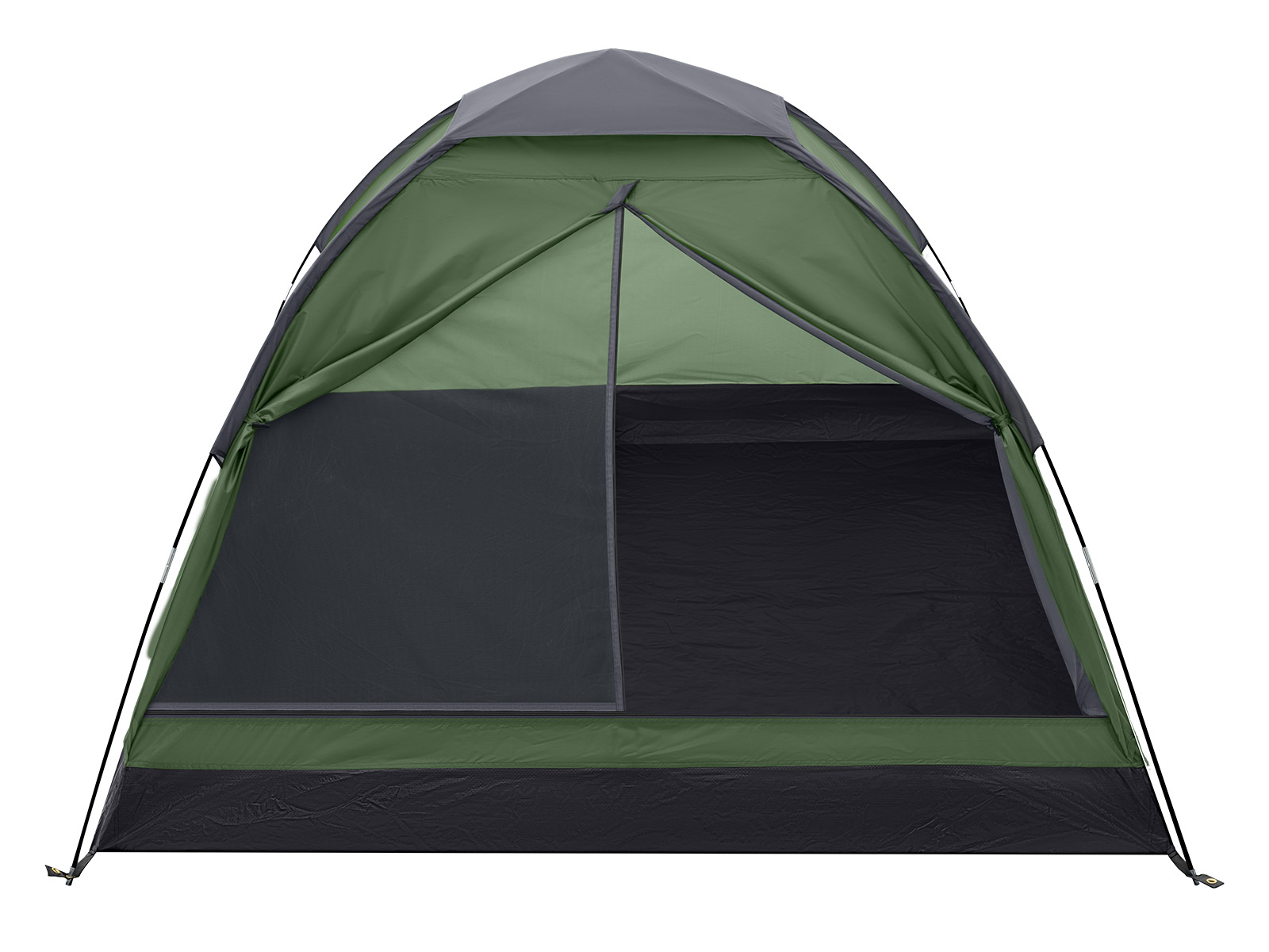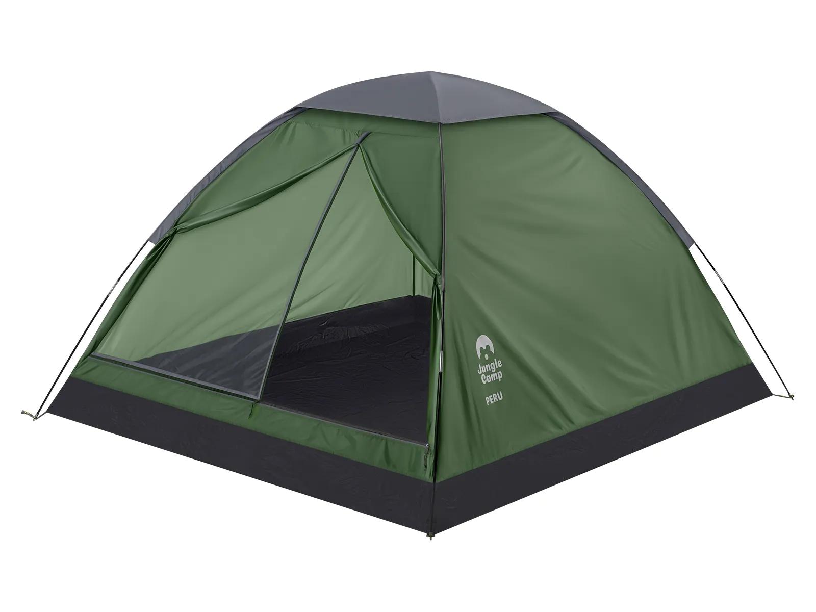 Трехместная однослойная палатка Jungle Camp Peru 3 прекрасно подойдет для походов выходного дня. Быстрая и легкая установка. Защитит от дождя благодаря пропитке PU с водостойкостью 3000 мм, а проклеенные швы предотвращают протекание воды в палатку. Жесткость каркаса обеспечивается наличием оттяжек, необходимых при ветреной ветре. В верхней части палатка имеет 4 вентиляционных окна, что не дает скапливаться конденсату на стенках палатки, позволяя выводить влагу наружу. Противомоскитная сетка в полный размер двери обеспечивает хорошую вентиляцию, препятствуя проникновению насекомых. Для организации пространства внутри палатки предусмотрены карманы для мелочей, крючок для подвешивания фонаря.