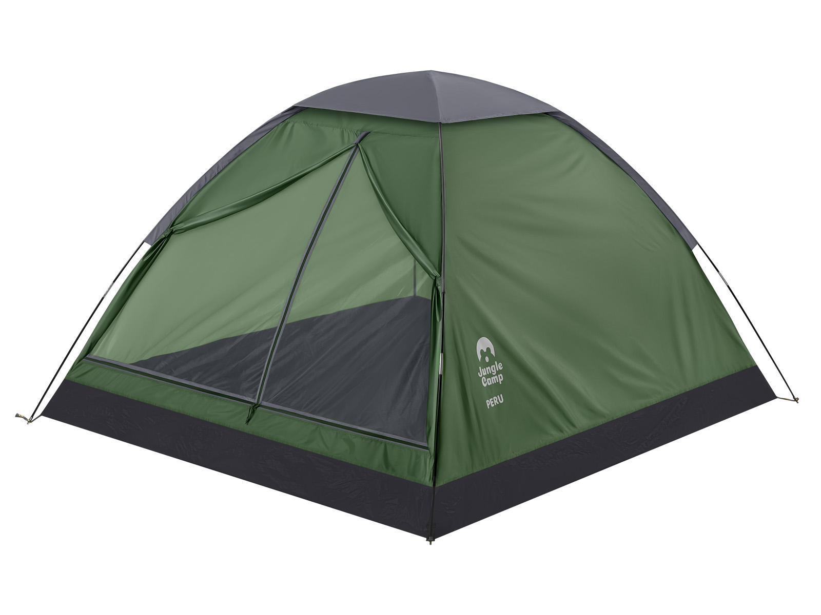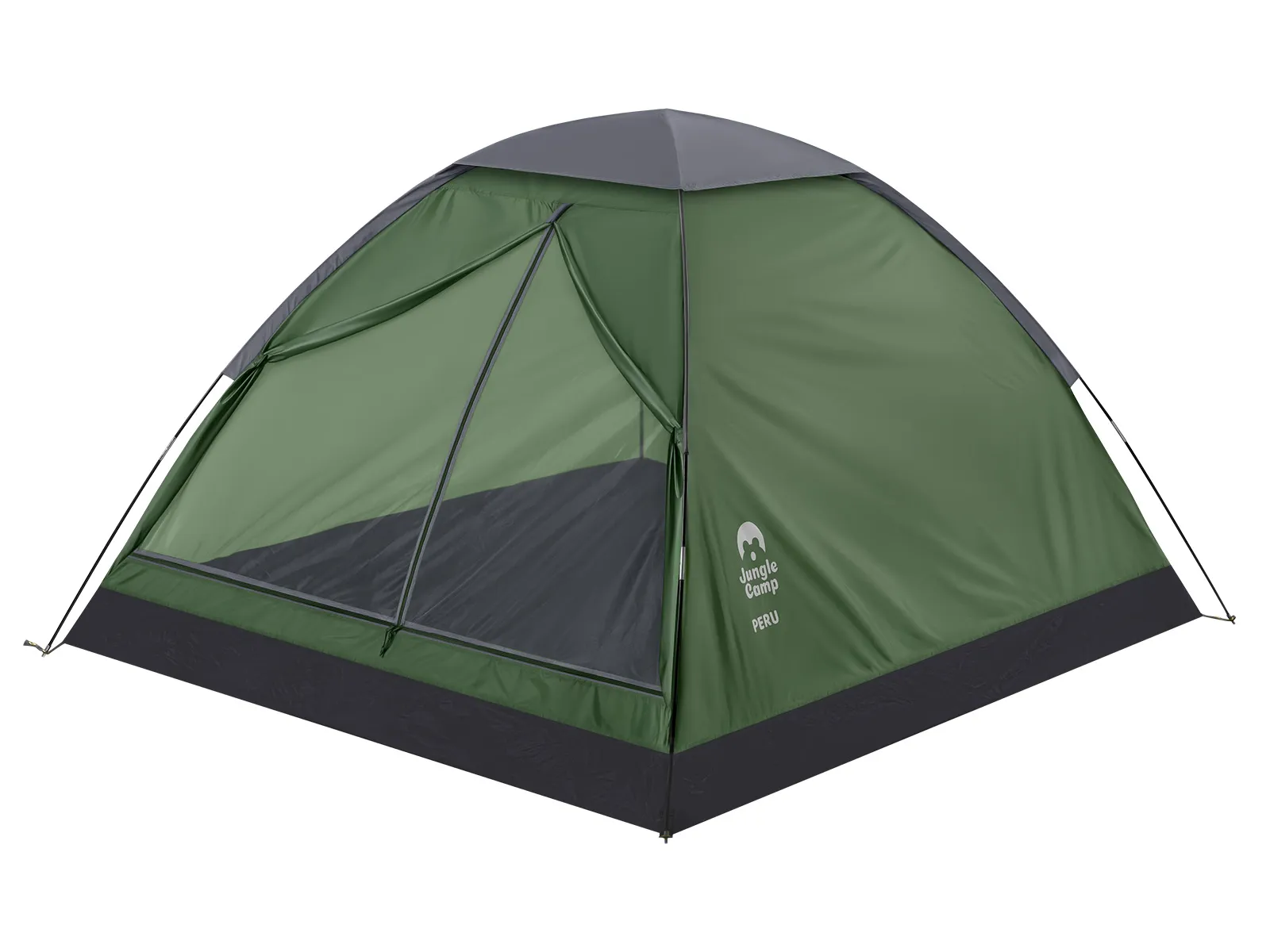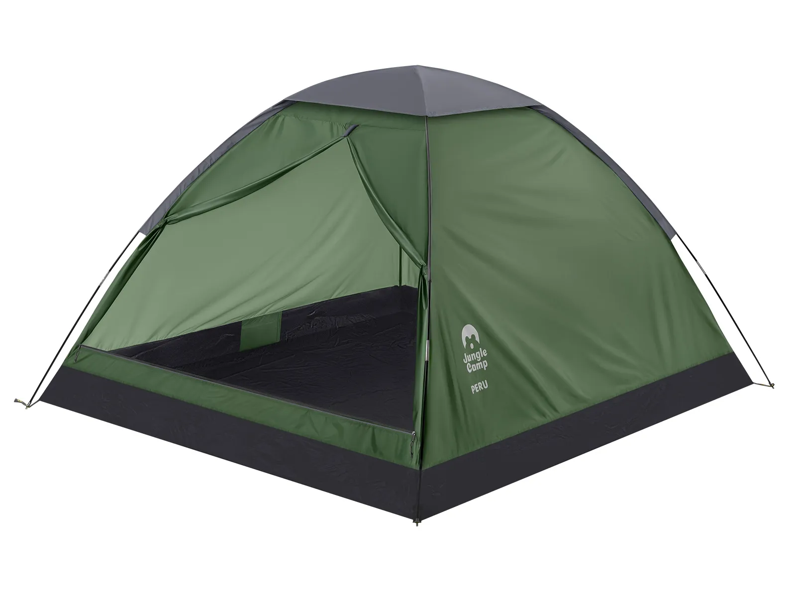 Четырехместная однослойная палатка Jungle Camp Peru 4 прекрасно подойдет для походов выходного дня. Быстрая и легкая установка. Защитит от дождя благодаря пропитке PU с водостойкостью 3000 мм, а проклеенные швы предотвращают протекание воды в палатку. Жесткость каркаса обеспечивается наличием оттяжек, необходимых при ветреной ветре. В верхней части палатка имеет 4 вентиляционных окна, что не дает скапливаться конденсату на стенках палатки, позволяя выводить влагу наружу. Противомоскитная сетка в полный размер двери обеспечивает хорошую вентиляцию, препятствуя проникновению насекомых. Для организации пространства внутри палатки предусмотрены карманы для мелочей, крючок для подвешивания фонаря.