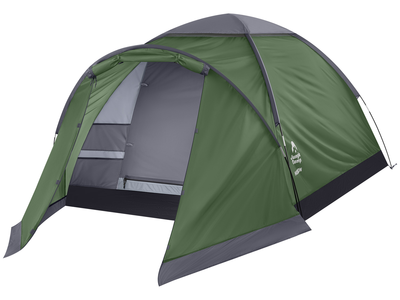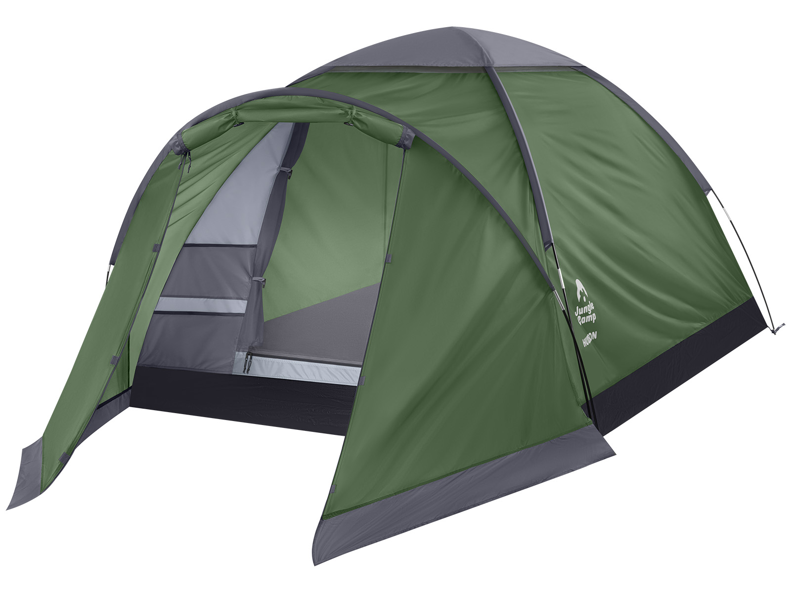 Палатка туристическая однослойная JUNGLE CAMP Hudson 3 легкая и быстрая в установке отличный выбор для посещения фестивалей или непродолжительного кемпинга. Палатка с тамбуром выполнена из полиэстера с пропиткой PU имеет водостойкость 3000 мм. Проклеенные швы предотвращают протекание воды в палатку. Защитная юбка по периметру тамбура предотвращает попадание воды в тамбур. 4 вентиляционных окна в крыше палатки обеспечивают отличную вентиляцию, предотвращая скапливание конденсата и отведение его наружу. Вместительный тамбур позволяет разместить обувь и снаряжение. Палатка имеет каркас из прочного стекловолокна. Дно палатки выполнено из прочного армированного полотна. Удобная D-образная дверь на входе в спальное отделение. Москитная сетка в полный размер двери в спальное отделение обеспечивает отличную вентиляцию и защиту от проникновения насекомых. 2 больших сетчатых кармана у входа в спальное отделение. Для организации пространства внутри палатки предусмотрены карманы для мелочей, крючок для подвешивания фонаря. Палатка для путешествий имеет чехол для хранения.