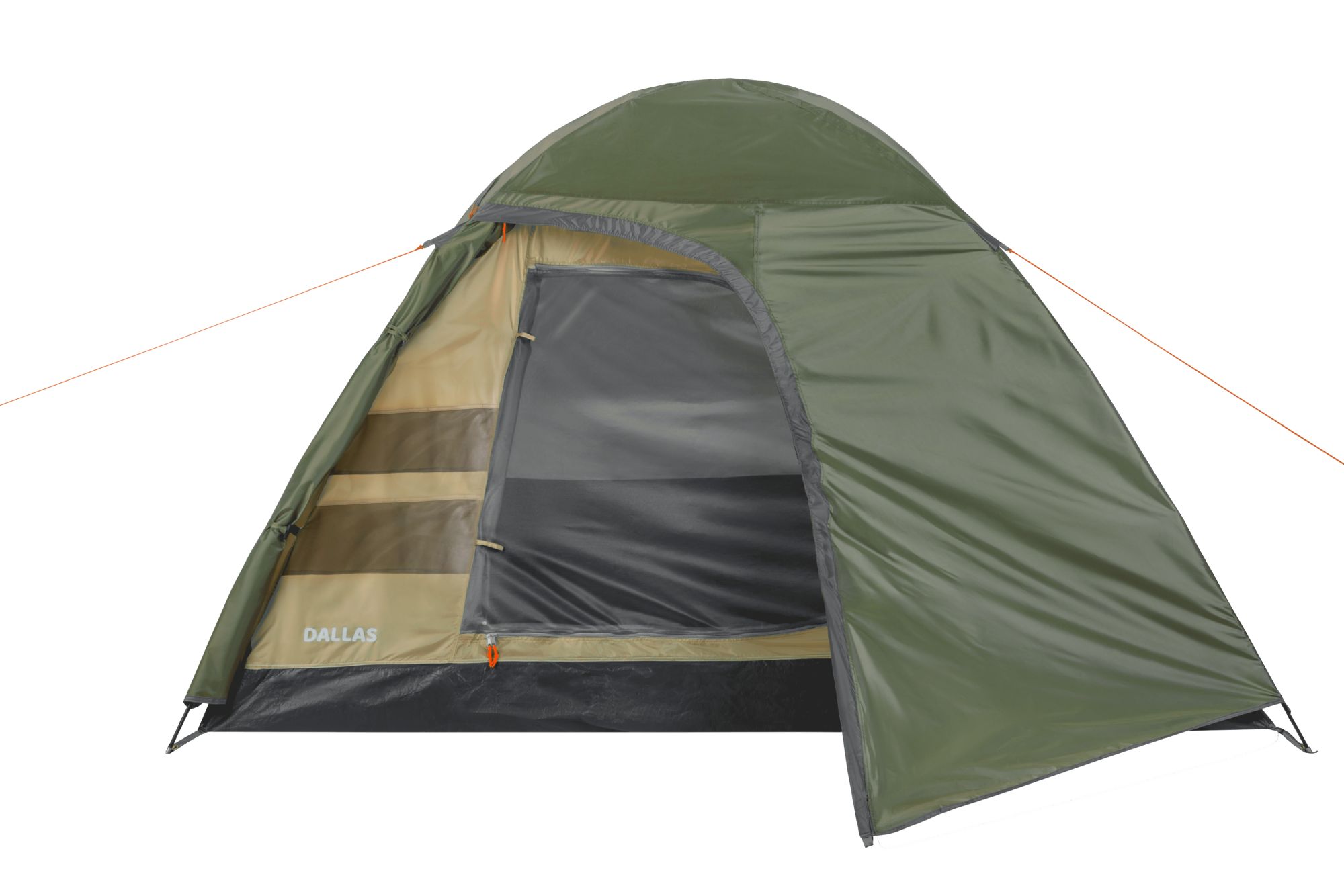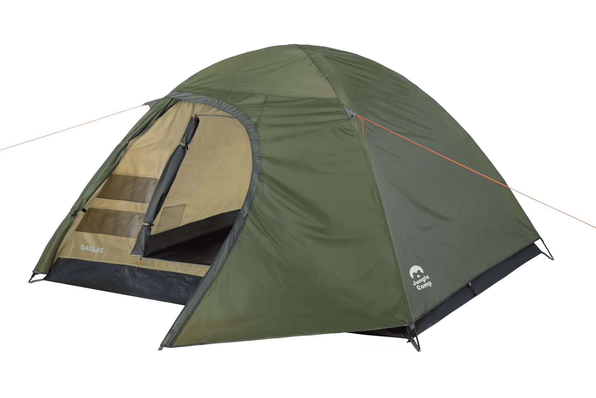 Трёхместная палатка с небольшим тамбуром Jungle Camp Dallas 3 отлично подойдет для выездов на природу, рыбалки с ночевкой, походов выходного дня. Это самая бюджетная, не в ущерб техническим характеристикам, модель среди двухслойных палаток. Внешний тент с пропиткой PU водостойкостью 3000 мм и проклеенные швы надежно защищают от дождя и ветра. Внутренняя палатка выполнена из «дышащего» полиэстера, что препятствует оседанию конденсата на стенках спального помещения. Противомоскитная сетка в полный размер двери и вентиляционное окно на задней стенке палатки обеспечивают хорошую вентиляцию и препятствуют проникновению насекомых. Удобный тамбур позволяет разместить рюкзаки и обувь.Палатка легкая в сборке. Для организации пространства внутри палатки предусмотрены карманы для мелочей, крючок для подвешивания фонаря.