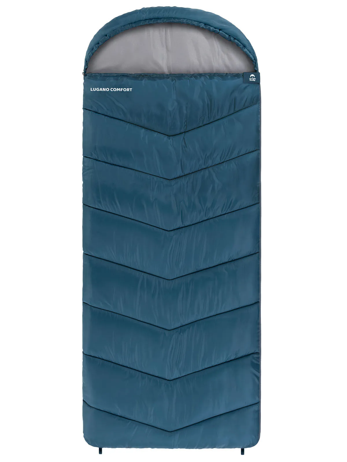 Большой и комфортный спальник JUNGLE CAMP LUGANO COMFORT предназначен для отдыха на природе с конца весны до начала осени, когда возможны похолодания. Прекрасно подойдет людям крупной комплекции и любителям простора и свободы во время сна. У спальника большой и уютный анатомический капюшон со шнуровкой.